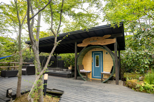 露天風呂横のテラスに、フィンランド式サウナ(バレルサウナ)が完成いたしました。